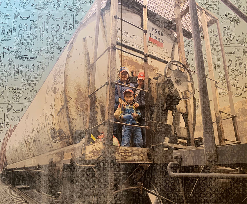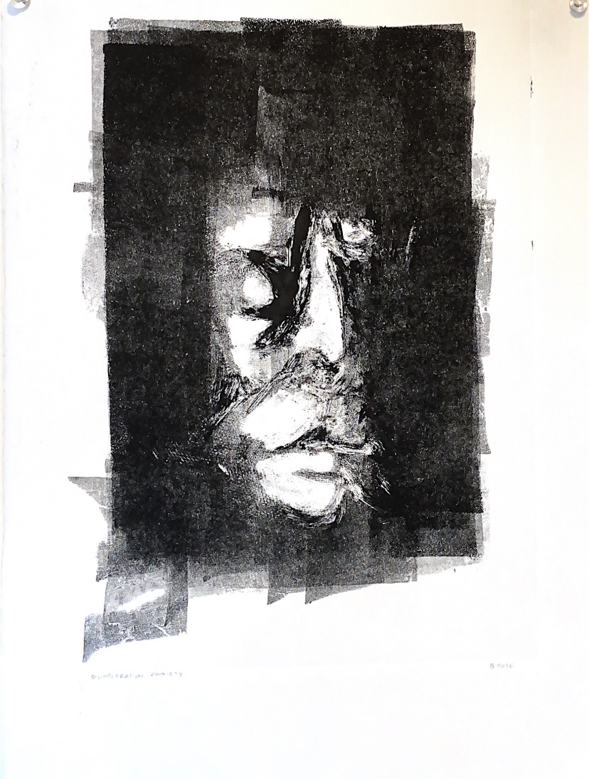 a commission for the jesuit headquarters in rome that i was given the opportunity for through my college. myself and 4 other printmaking students were tasked with making larger-than-life 5'x8'(?) prints using various methods of printmaking, reflecting the core values and missions of the jesuit organization. i was tasked with representing migration, transience, and refuge, and this was the result. permanently installed at the jesuit curia in the vatican city.